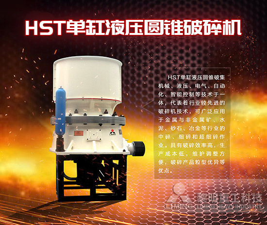 HST单缸液压圆锥破集机械、液压、电气、自动化、智能控制等技术于一体,代表着世界的破碎机技术,可广泛应用于金属与非金属矿、水泥、砂石、冶金等行业的中碎、细碎和超细碎作业。具有破碎效率高,生产成本低,维护调整方便,破碎产品粒型优异等优点。